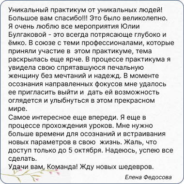 Участие в практикуме в сопровождении автора — Юлией Булгаковой